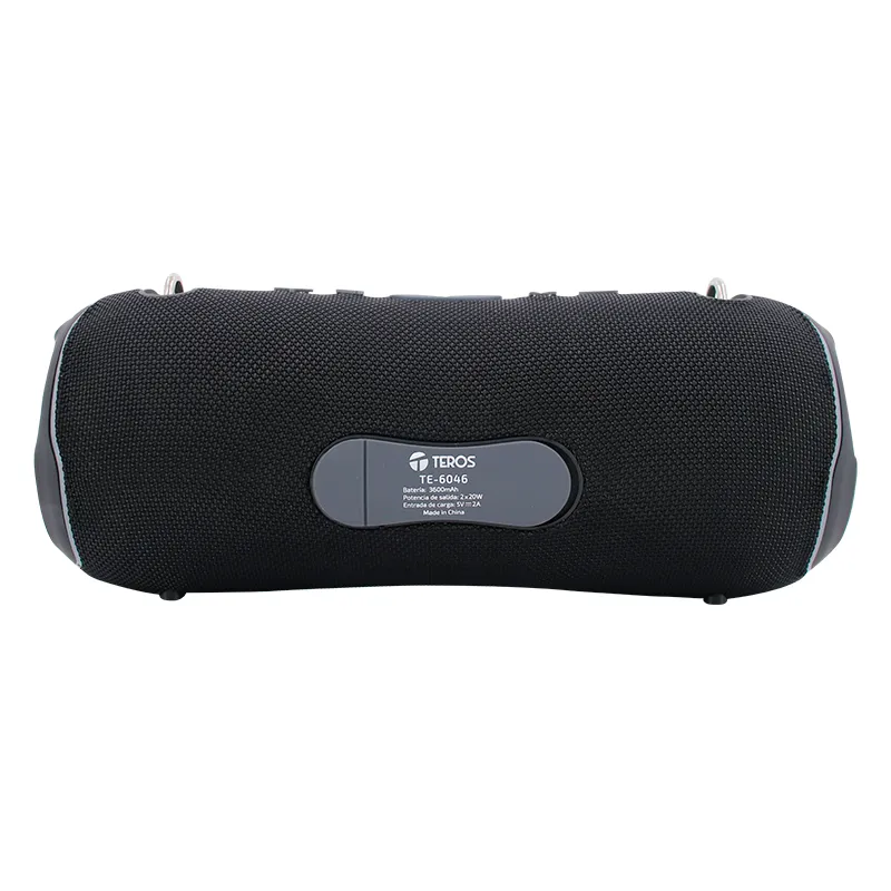 Parlante TEROS Ultra TE-6046BM BT 5.3 RGB TWS color azul militar camuflado El parlante Bluetooth TEROS TE-6046BM de 40W ofrece un sonido potente y claro con un rango de frecuencia de 120Hz a 18kHz. Con Bluetooth 5.3, radio FM, ranura para microSD y entrada auxiliar, es perfecto para diferentes fuentes de audio. Además, cuenta con luces RGB, resistencia...