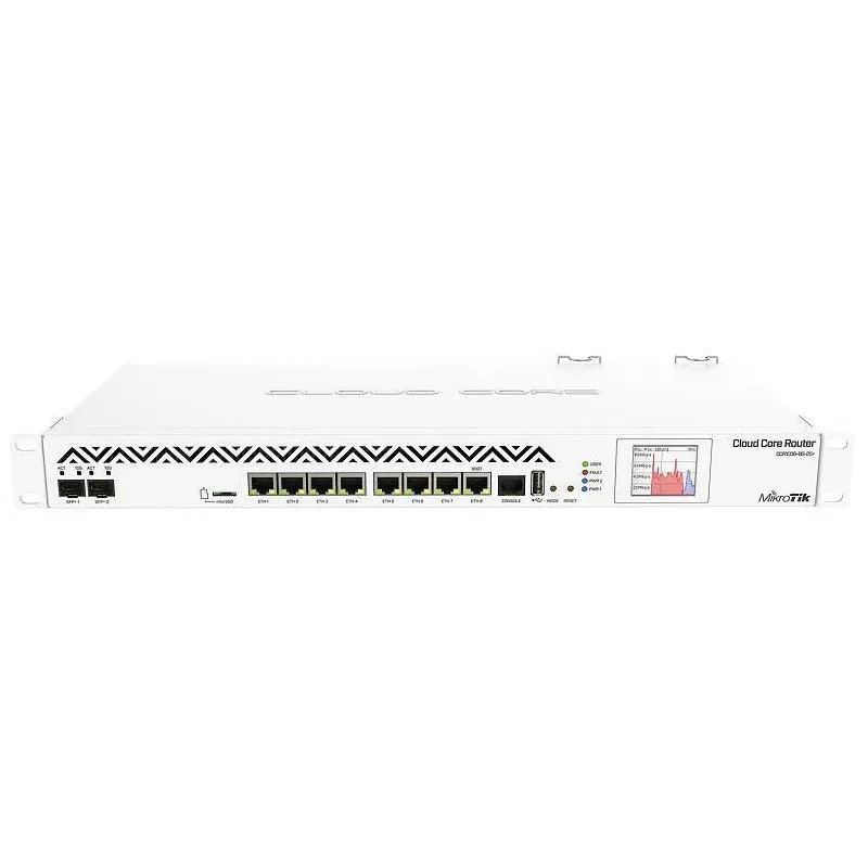 1U en rack, 8x Gigabit Ethernet, 2xSFP + jaulas, LCD, 36 núcleos x 1.2GHz CPU, 8GB RAM, 41.5mpps fastpath, rendimiento de hasta 28 Gbit / s, RouterOS L6, PSU dual