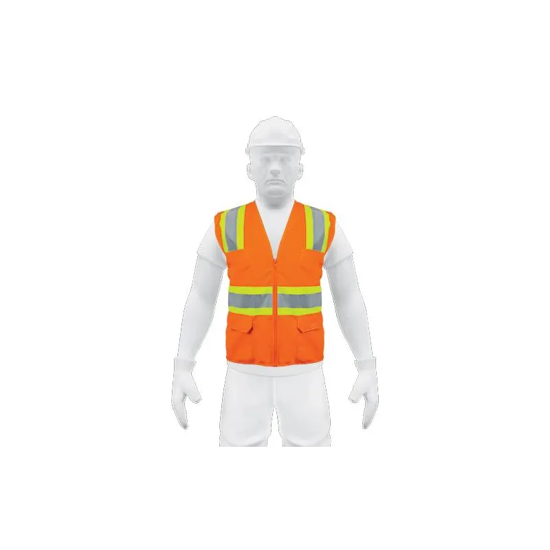 Chaleco de Seguridad Unitalla Naranja Cintas Dobles 3/4" Alta Visibilidad, CHS-200N 21025 Pretul - Fabricado en malla ligera 100% poliéster respirable - Cintas plateadas de 3/4" para alta visibilidad - Correas elásticas y cinta velcro para mayor ajuste - Resistente a la exposición del sol
