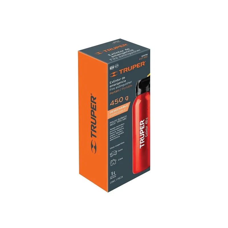 Extintor Desechables 450g Portatil Inc. Polvo Tipo ABC, Casas Autos, Truper 101174