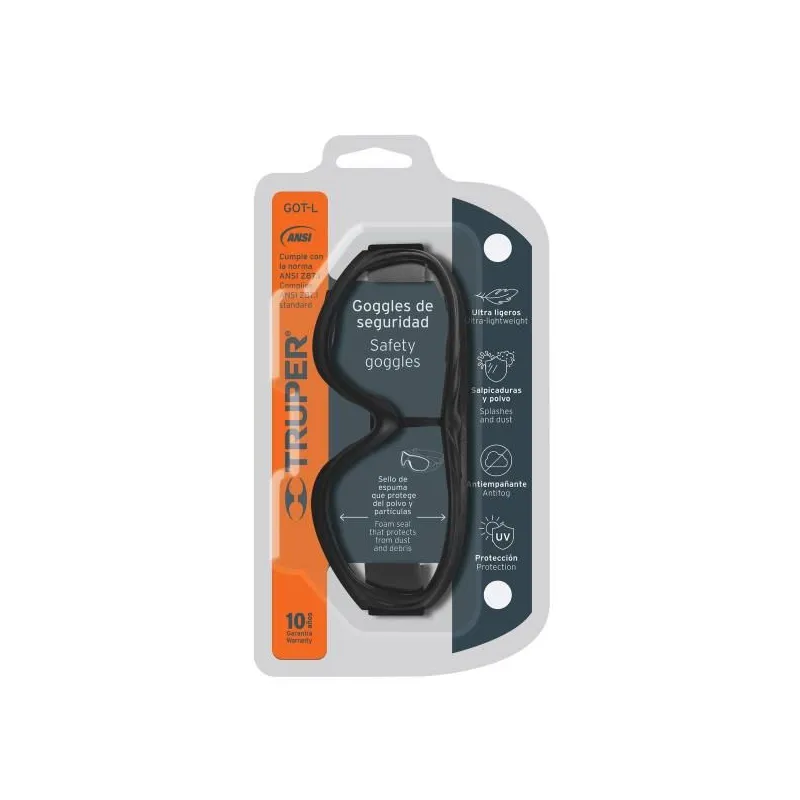 Goggles de seguridad ligeros mica transparente, Truper 19952