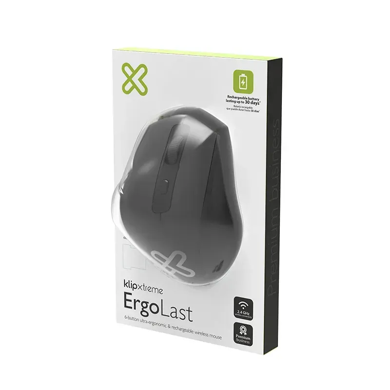 Si pasas largas horas delante de una computadora, estar cómodo es crucial. El mouse inalámbrico ErgoLast de Klip, la nueva incorporación a nuestra serie Business, tiene un diseño ultra-ergonómico para mantener tu mano en una posición natural y cómoda el tiempo que desees. Equipado con 6 botones y resolución ajustable, este mouse tiene una batería recargable incorporada que, dependiendo del uso, puede durar hasta 30 días*. En otras palabras, ya no tendrás que comprar baterías, una ventaja más para un producto conveniente y portátil.