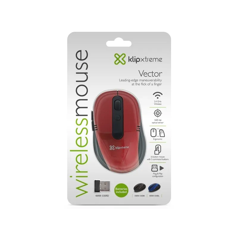 Mouse Inalambrico Klip Xtreme KMW-330RD Vector 6Botones 2.4GHz NanoUSB