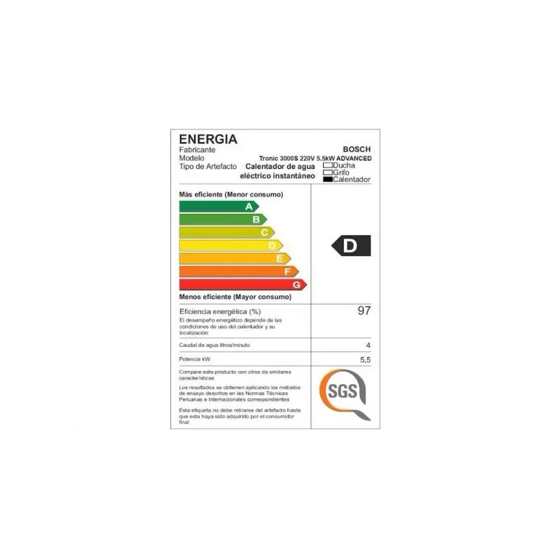 Rapiducha Eléctrica advanced EWI 5.5 KW Bosch 7736506799
