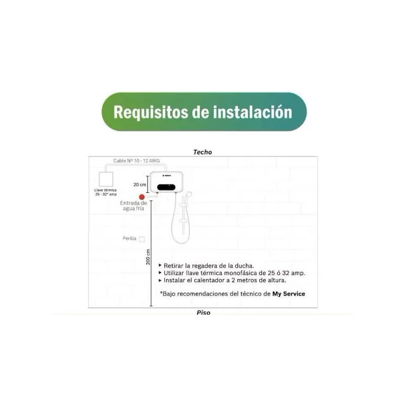 6. Preparado para instalacion diectamente en el sitio de la ducha.
