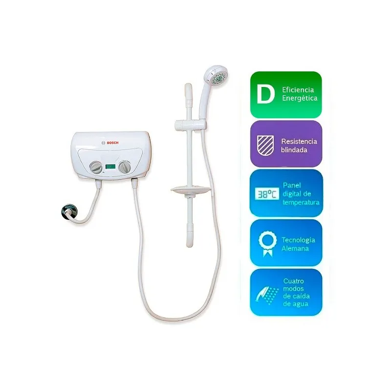 Rapiducha Electrica Bosch Top 5.5kw 8L x min, Calentador Regulable Instantaneo Resistencia Blindada con sensor de proteccion