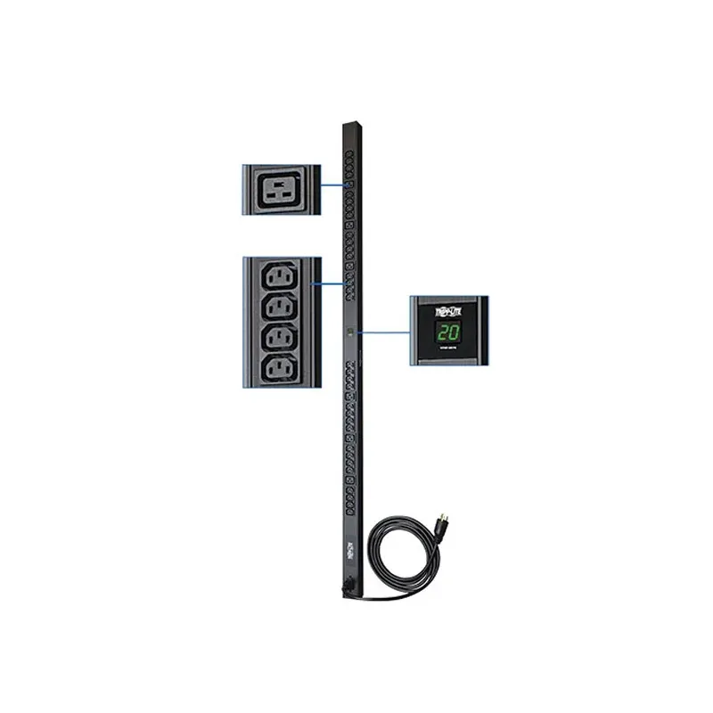 PDU monofásico con medidor digital, de 16/20A 200/240V, para instalación vertical de 0U en rack de 162 cm, cable de alimentación desprendible de 3.05 MTS, con clavija NEMA L6-20P, 38 tomacorrientes (32 C13, 6 C19).