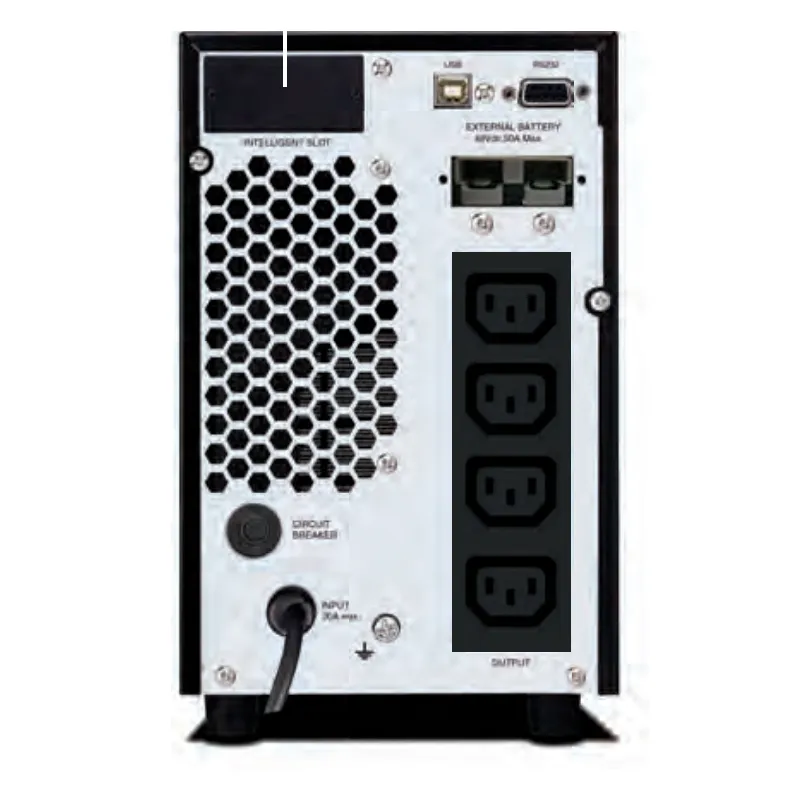UPS Online con doble conversión de alto rendimiento, para tareas criticas y aplicaciones corporativas. Cuenta con Display LCD de facil uso que muestra voltajes de entrada, salida, tiempos de autonomia y carga de bateria. Tipo y cantidad de baterías: 12V/9Ah x 4, Slot para tarjeta SNMP, Conector para banco de baterias adicionales, Dimensiones (largo x alto x profundo): 14.50 x 23.50 x 40.00 cm, Peso: 15.5kg.