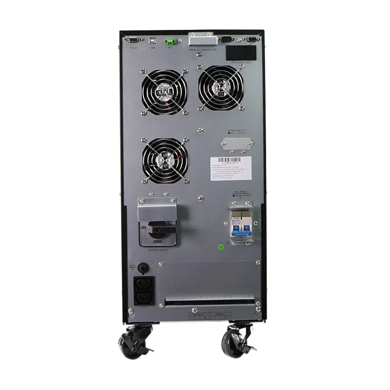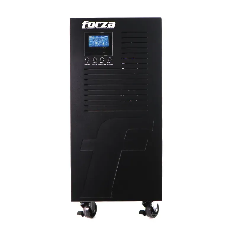 Sistema UPS en línea con verdadera tecnología de doble conversión ofrece el nivel más alto de protección, apto para equipos críticos al aislar efectivamente las cargas conectadas del suministro de energía eléctrica. Este sistema funciona al convertir la corriente de alterna a continua y luego a alterna otra vez gracias al inversor de dos etapas y al rectificador integrado.